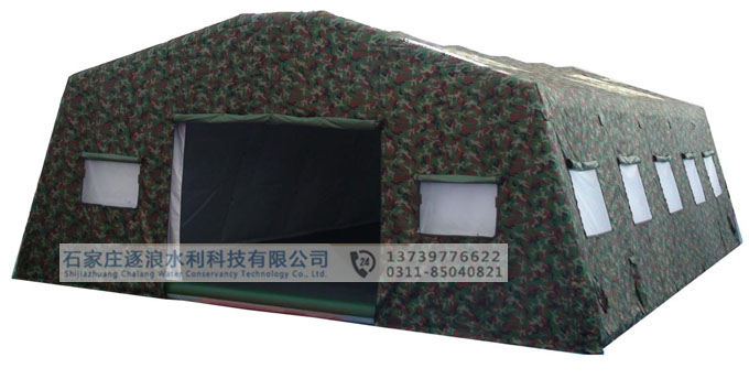 尺寸長11.25M,寬9.6M(108 m2),頂高4.14M,邊高1.8M 篷布外篷布,28×2/28×2滌綸迷彩防水帆布;保溫層,合纖針刺3mm厚;內(nèi)篷布150D/150D平紋本色牛津布;阻燃地布。 支桿焊接薄壁型鋼管 包裝件數(shù)12件 重量645kg 用 途供野戰(zhàn)條件下指揮所使用。 主要特點結構簡單、合理、安全可靠;便于架設與撤收,不需任何輔助工具;圍護篷布設有保暖層和可開啟通風窗,冬季密閉、夏季通風,保溫隔熱性能好,可南北通用;篷內(nèi)寬敞明亮,配有地布,可居性好;包裝形體規(guī)則,便于車載運輸,可人工裝卸及短途搬運。