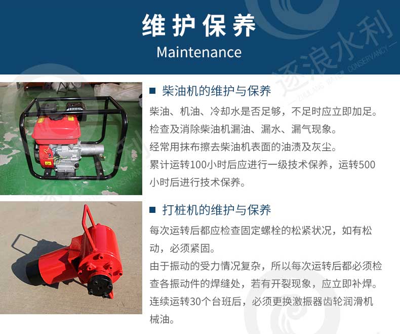 近期,隨著汛期雨季的來臨又到了防汛搶險的季節(jié),每到雨季壩上河流險情會增加,常用的水庫河道搶險產(chǎn)品,吸水膨脹袋、防汛沙袋、防汛擋水墻使用中都需要打樁來固定加固,植樁打樁機在防汛植樁作業(yè)使用非常方便,只要兩人操作就可以快速植樁作業(yè)。石家莊逐浪水利科技有限公司的防汛實用型打樁機是一種以油機為動力源的打樁機,它包括樁架、樁頭和樁墩。具有體積小、重量輕、操作簡單、施工方便、打出的樁孔質(zhì)量好等優(yōu)點。