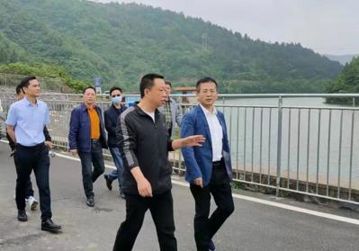 ▲圖為衡陽市鄉(xiāng)村振興局黨組書記、局長王蘇龍(右一)實(shí)地察看鐵塘橋水庫開展防汛備汛工作情況
